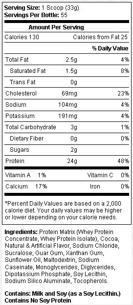 - Proporciona 24 g de proteína, 3 g de carbohidratos y solo 2,5 g de grasa por dosis.