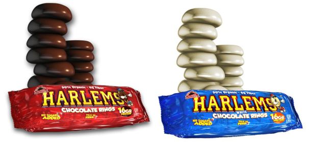 Cada caja de Harlems contiene 9 paquetes de 110 gramos con 9 rosquillas por paquete y disponibles en dos formatos, recubiertos de chocolate negro o recubiertos de chocolate blanco.