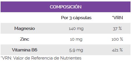 - Contiene una combinación sinérgica de zinc, magnesio y vitamina B6.
