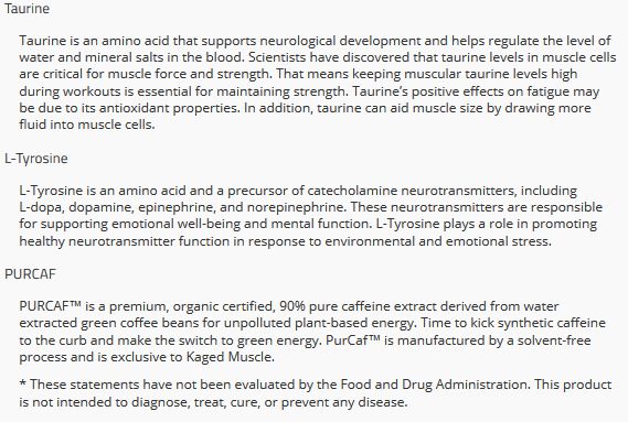 MATRIZ DE COMBUSTIBLE MUSCULAR 2:1:1 (L-leucina (fermentada), L-isoleucina (fermentada), L-valina (fermentada)), MATRIZ ENDURA-PUMP (L-citrulina (fermentada), CarnoSyn® (beta alanina), Agua de coco en polvo), MATRIZ DE NEURO-ENERGÍA (Taurina, L-tirosina, Cafeína PurCaf™ (de granos de café verde).