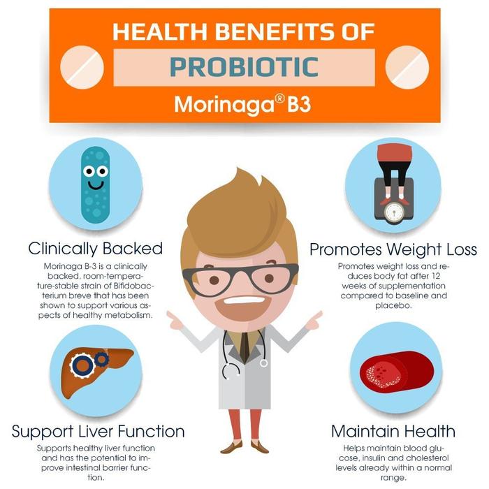 In a 12 week study, Morinaga B3 was documented to significantly suppress weight gain and body fat accumulation in humans! Researchers also noted those taking the advanced probiotic also lowered blood glucose and total cholesterol levels.*
