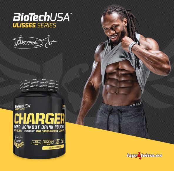 Ulisses inspira a millones de personas para alcanzar sus objetivos. Durante los 20 años que ha estado activo en el culturismo, Ulisses ha conseguido construir una increíble y armoniosa a la vez que masiva cantidad de músculo. Por este motivo muchas celebridades le piden ayuda para conseguir la forma perfecta. Ha llegado el momento de que tú también compartas estos conocimientos. Junto con BioTechUSA Ulisses ha creado Charger, la primera obra maestra de Ulisses Series que combina la experiencia del deportista en culturismo y las habilidades profesionales de una marca premium adquiridas en el campo de los suplementos dietéticos.