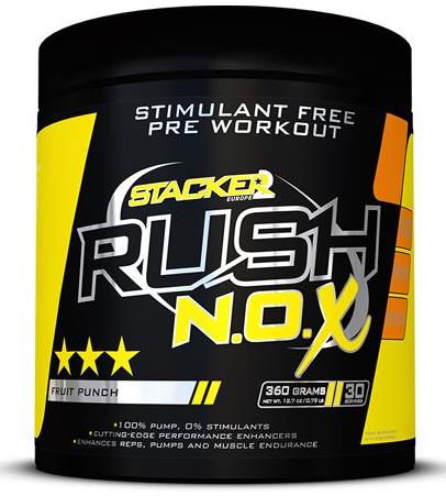 Rush N.O.X. de Stacker2 Europe es una versión sin estimulantes del potente pre-entreno Rush, uno de los productos para antes de entrenar más populares y galardonados de los últimos tiempos.