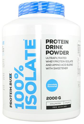 100% Isolate de Protein.Buzz es un suplemento en polvo con edulcorantes que contiene proporciona 21 gramos proteína procedente exclusivamente de aislado de suero de leche con BCAAs añadidos, L-Glutamina y otros aminoácidos importantes.