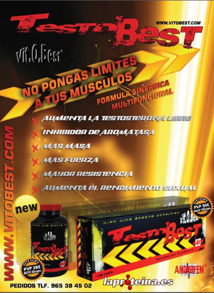 TestBest de VitoBest es la nueva versión de TestoBest, la más avanzada fórmula anabólica de doble acción, ya que es capaz de mejorar los niveles hormonales y al mismo tiempo inhibir los efectos de la aromatasa.