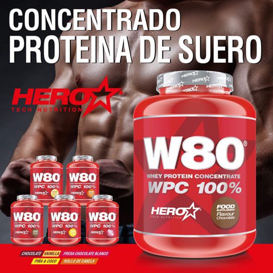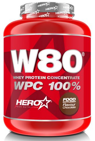 W80® WPC 100% Whey Protein Concentrate de Hero Tech Nutrition contiene solamente concentrado de proteína de suero de leche de la más alta calidad, con una alta tasa de absorción, gran solubilidad y alta biodisponibilidad de aminoácidos, obtenida mediante un proceso de ultrafiltrado.