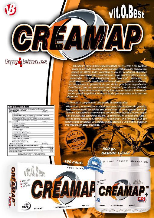 Esta novedosa matriz de creatinas llamada Creamap, incluye la creatina de ultima generación Crea-trona.
