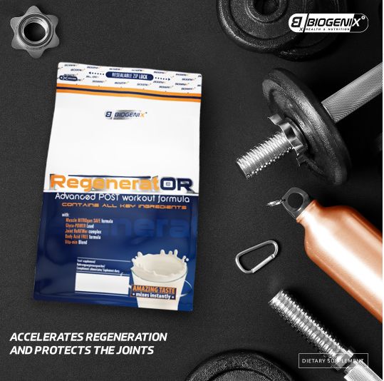 Regenerator® de Biogenix Health & Nutrition es un suplemento en polvo diseñeado para tomar después del entrenamiento y que contiene una fórmula con los ingredientes clave para optimizar una regeneración más rápida y efectiva después del entrenamiento.