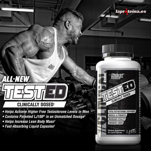 Tested™ de Nutrex Research es un suplemento en cápsulas líquidas de rápida acción diseñado para mejorar la producción natural de testosterona, mejorar la masa muscular y la fuerza, incrementar la vitalidad, además de potenciar la libido y la salud sexual.