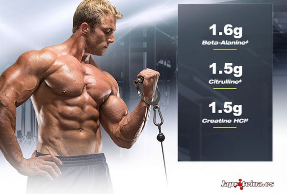 - Con una dosis clínica de beta-alanina, citrulina y creatina monohidrato.