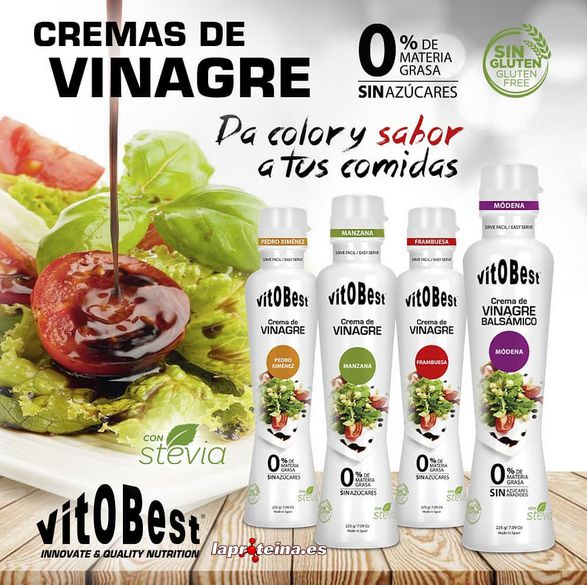 Cremas de Vinagre de VitOBest® son unas deliciosas cremas de vinagre con un 0% de materia grasa, sin azúcares añadidos y sin gluten, ideales para los consumidores más exigentes que busquen aderezar su dieta con un toque diferente de sabor y calidad.