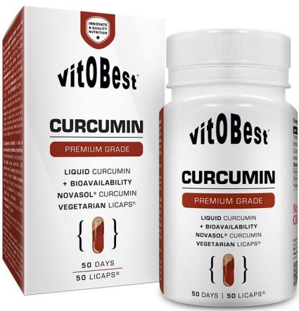 Curcumin de Vitobest® es un suplemento en cápsulas líquidas (Licaps®) que proporciona 500 mg de NovaSOL® Curcumin por cápsula, un compuesto patentado especialmente formulada con la curcumina con mayor biodisponibilidad del mercado y enriquecida con las vitaminas C y D.