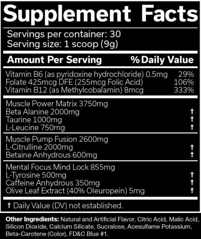 Este pre-entreno comenzará suavemente, pero conseguirá despertar al gigante enfurecido que llevas dentro. Siente como una energía anormal se dispara por tu cuerpo. Una fuerza mejorada y una gran congestión muscular impulsan tus sesiones de entrenamiento hasta un nuevo nivel, y lo mejor de todo, con una concentración mental casi hipnótica.