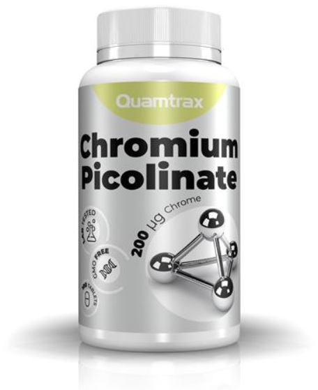 Picolinato de Cromo de Quamtrax Nutrition es un suplemento en tabletas que proporciona 200 µg de picolinato de cromo por dosis de una tableta.