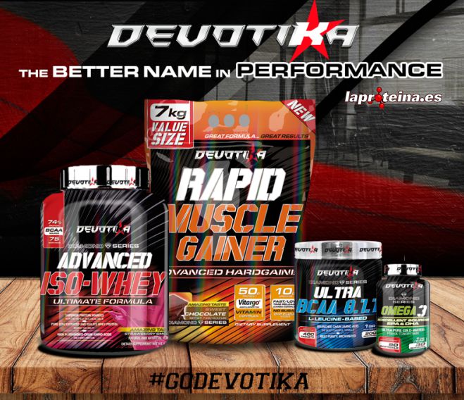 Rapid Muscle Gainer de Devotika es un suplemento en polvo que contiene una fórmula diseñada para ayudarte a ganar masa muscular de una forma rápida gracias a la combinación de tres carbohidratos con diferentes velocidades de absorción (dextrosa, harina de avena y Vitargo™), proteína de concentrado de proteína de suero de leche, monohidrato de creatina y un complejo vitamínico.