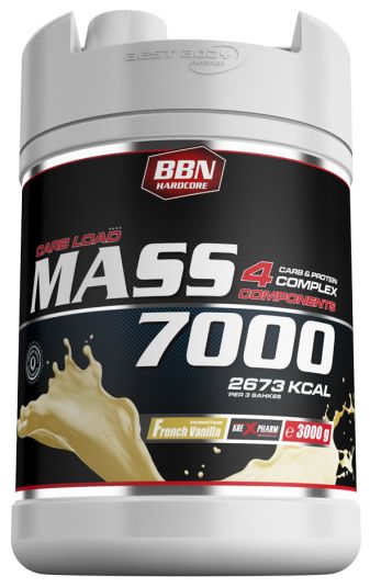 BBN Hardcore Mass 7000 de Best Body Nutrition es un suplemento ganador de peso en polvo para un rápido desarrollo de la masa muscular que combina una matriz de 4 carbohidratos (maltodextrina, dextrosa, avena y almidón de maíz) con un complejo proteico de 4 fuentes de proteína (proteína de suero de leche, proteína de leche, proteína de huevo y proteína de soja aislada) optimizado con creatina y zinc.