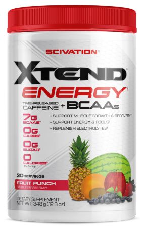 Xtend™ Energy de Scivation es un suplemento en polvo que proporciona 7 gramos de BCAAs, 1 g de malato de citrulina, una mezcla de electrolitos y un complejo especial diseñado para proporcionarte una intensa energía de rápida y larga duración.