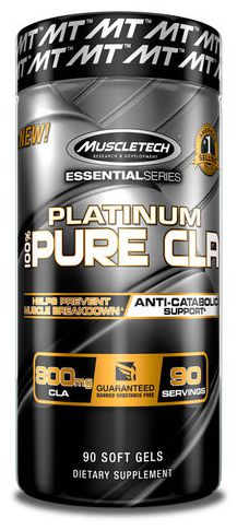 Platinum 100% Pure CLA dentro de la línea Essential Series de la marca Nº1 en todo el mundo Muscletech® es un suplemento enperlas que proporciona 800 mg de ácido linoleico conjugado ultra puro (CLA) por dosis de 1 perla.