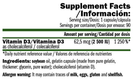 VITAMIN D3 2500 I.U. 90 PERLAS