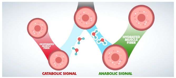 Otro atributo muy positivo de la suplementación con creatina es el proceso conocido como "voluminización celular". El monohidrato de creatina extrae agua dentro de la célula muscular, aumentando su volumen de manera efectiva. ¿Por qué es importante el volumen celular? Bueno, las investigaciones han sugerido que el aumento de la hidratación celular y el volumen celular puede ayudar a combatir la descomposición de las proteínas y estimular la síntesis de proteínas. Al saturar tus músculos con creatina, puedes aumentar el líquido intracelular, ¡lo que da como resultado unos músculos más grandes y más llenos!