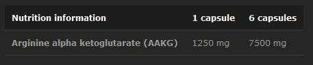- Proporciona 1.250 mg de arginina alfa cetoglutarato por cápula.