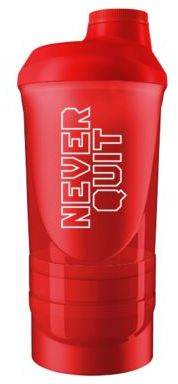 Shaker Never Quit te proporciona la libertad y ventaja que supone llevar todo lo que necesitas para todo el día, en una sola unidad. Es mucho más conveniente que llevar tres agitadores individuales, o peor aún, transportar a todos lados tus envases de suplementos.