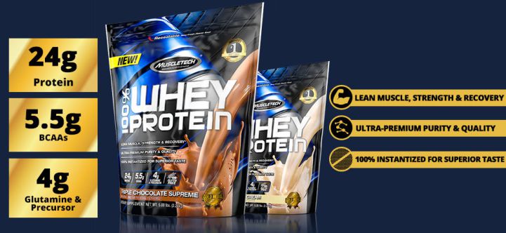 100% Whey Protein de la marca Nº1 en todo el mundo Muscletech es un suplemento en polvo que contiene una fórmula proteica ultra-avanzada que combina el concentrado de proteína de suero, los péptidos de proteína de suero y el aislado de proteína de suero de la más alta calidad.