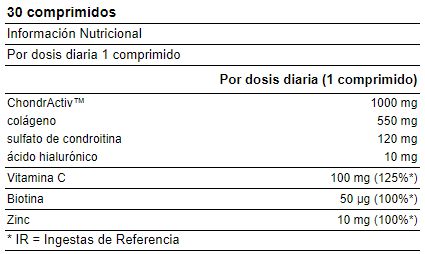 - Contiene ChondrActiv™, un ingrediente innovador y único (colágeno hidrolizado de tipo II, condroitín sulfato y ácido hialurónico).