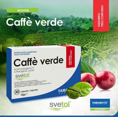 Café Verde de Yamamoto® Nutrition es un suplemento en cápsulas que proporciona 400 mg de extracto de semilla de café verde de Svetol® estandarizado al 45% en ácidos clorogénicos, por dosis de 2 cápsulas.