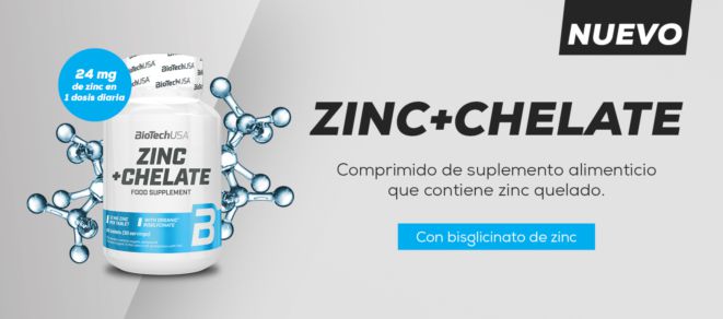 Zinc + Chelate de BioTech USA es un suplemento en tabletas que proporciona 12 mg de zinc como óxido de zinc y bisglicinato de zinc, una forma orgánica que es absorbida fácilmente por el cuerpo.