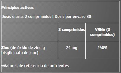 - Proporciona 24 mg de zinc activo por dosis de 2 tabletas.
