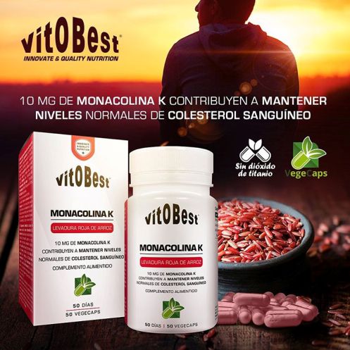 Monakolina K de Vitobest® es un suplemento en cápsulas que proporciona 10 mg de monacolina K, un compuesto activo que se obtiene de la levadura roja de arroz que contribuye a mantener los niveles normales de colesterol sanguíneo.