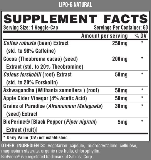 BioPerine®: This patented black pepper extract increases your metabolic rate by inducing thermogenic heat. Aside from helping you lose weight this also functions as a bio-availability enhancer, meaning it enables your body to assimilate the ingredients in LIPO6 NATURAL even more efficiently.†