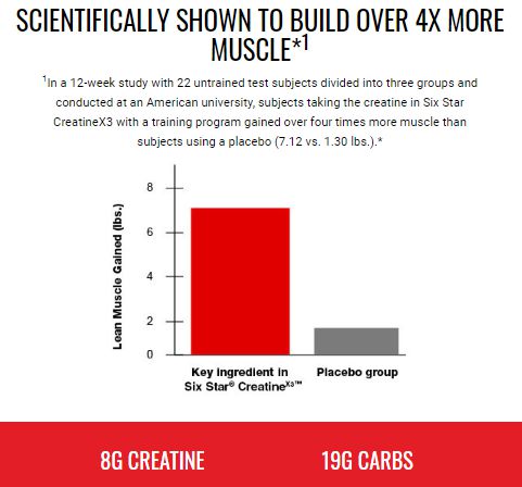Según un estudio realizado en la Universidad Estatal de Ohio con una duración de 10 días, con 31 deportistas entrenados con pesas asignados aleatoriamente a uno de tres grupos. Los resultados demostraron que los sujetos que consumieron la misma forma de creatina que se encuentra en Creatine X3 con un programa de entrenamiento aumentaron su capacidad de fuerza en el press de banca en un 18,6% en comparación con el valor inicial (6.658 frente a 5.613 julios).