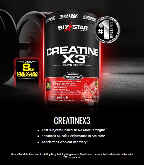 Creatine X3™ de Six Star® Pro Nutrition es un suplemento en polvo que contiene una combinación de 8 gramos de creatina con BCAAs y otros aminoácios para apoyarte en la mejora de la fuerza, el desarrollo de tu masa corporal y mejorar la recuperación después del entrenamiento.