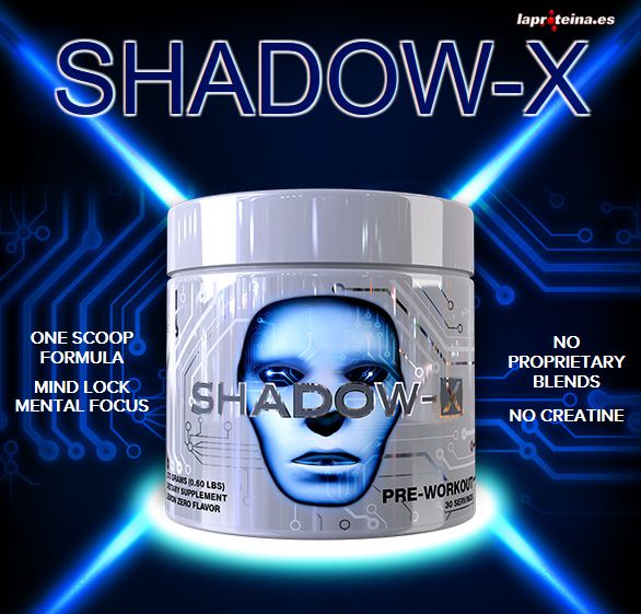 Una fórmula que no deja nada al azar y nada atrás. Puede que hayas probado muchos de los pre-entrenos de hoy en día, y puede que pienses que estas usando uno que sea muy fuerte. Mejor que le des una oportunidad a Shadow-X y descubrirás el verdadero sentido de la palabra "intensidad". Shadow-X conseguirá que tu mente vuele y no puedas dejar de entrenar durante un tiempo.