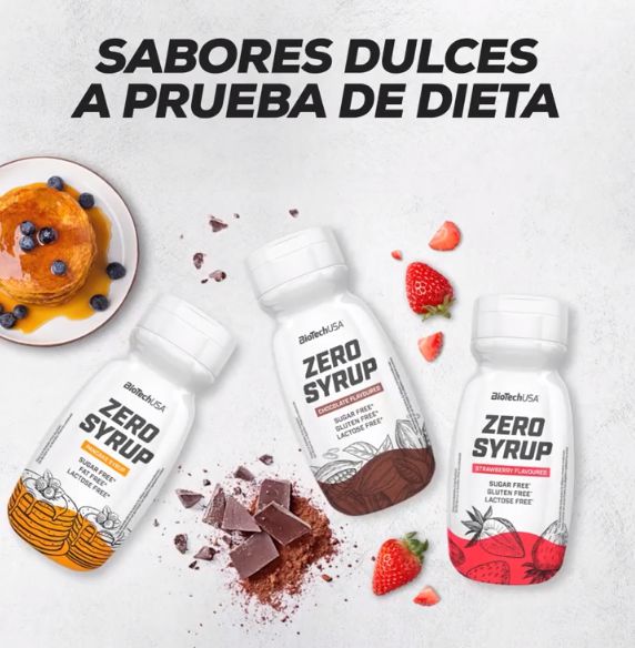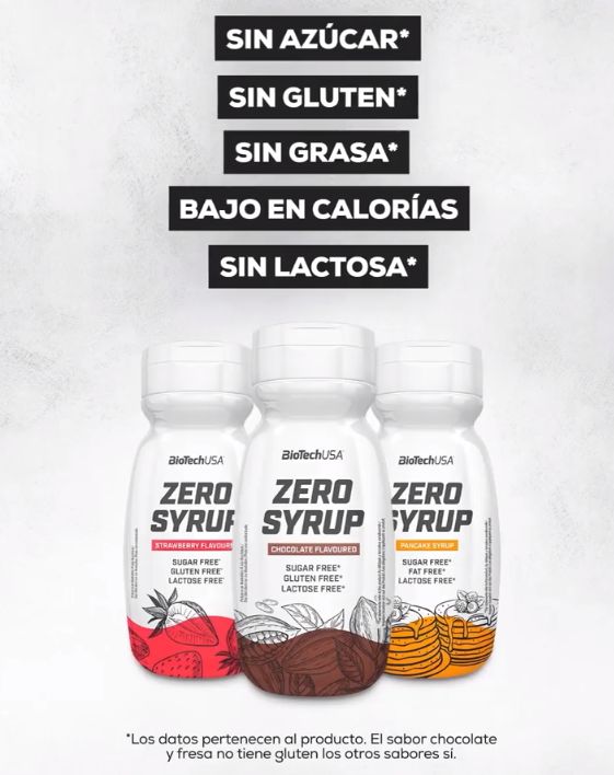 Prueba los nuevos Zero Syrup en cualquiera de sus 3 sabores disponibles y disfruta del sabor dulce del sirope de chocolate, del sirope de fresa o del sirope para tortitas de toda la vida sin preocuparte por el exceso de calorías. Zero Syrup es muy bajo en calorías y no contiene contiene azúcar o grasa, sin embargo su sabor es tan delicioso como el de cualquier sirope convencional.