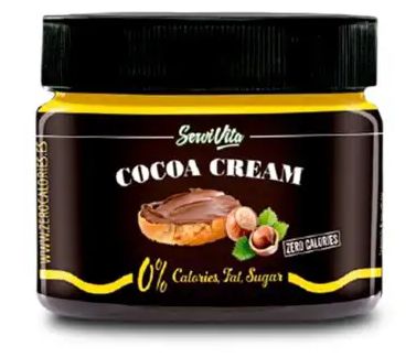 Crema de Cacao de Servivita es una deliciosa crema de chocolate con edulcorantes, sin azucar añadido y con menos de 4 kcal por ración, ideal para untar en el pan, con tus postres o directamente para comer con la cuchara y disfrutar de todo el sabor del chocolate sin tener que sentirte culpable por ello.