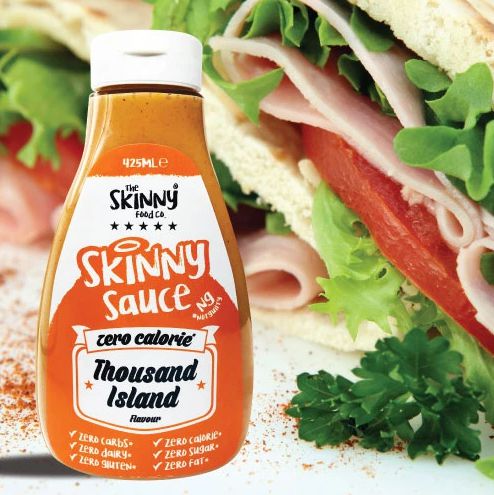 La nueva salsa Skinny Sauce Thousand Island de Skinny Food tiene todo el sabor de la salsa mil islas convencional, pero sin prácticamente calorías, ideal para acompañar toda clase de ensaladas, sandwiches y hamburguesas que podrás tomar a todas horas sin sertirte culpable por ello.