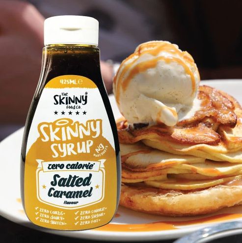 El nuevo sirope Skinny Syrup Salted Caremel de Skinny Food tiene todo el sabor de un sirope de caramelo salado convencional, pero sin prácticamente calorías, ideal para acompañar toda clase de postres, batidos tortitas y cualquier receta dulce que se te ocurra, que podrás tomar a todas horas sin sertirte culpable por ello.