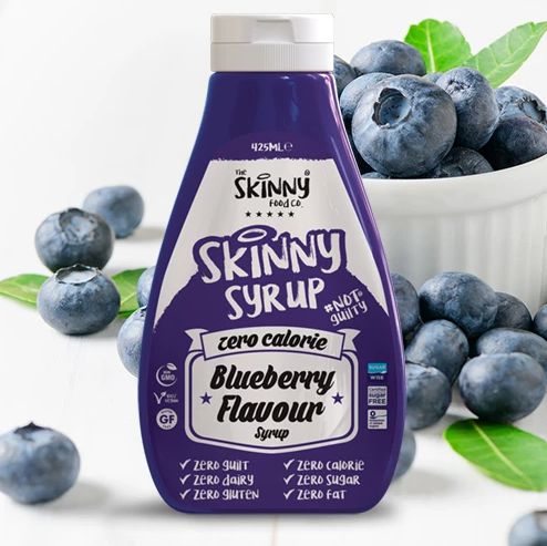 El nuevo sirope Skinny Syrup Blueberry de Skinny Food tiene todo el sabor del sirope de arándanos convencional, pero sin prácticamente calorías, ideal para acompañar toda clase de postres, batidos tortitas y cualquier receta dulce que se te ocurra, que podrás tomar a todas horas sin sertirte culpable por ello.