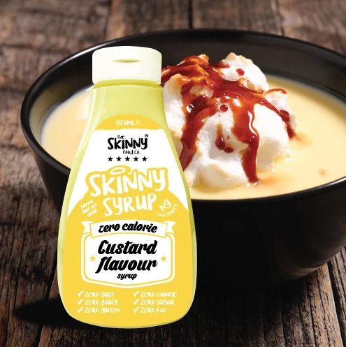 El nuevo sirope Skinny Syrup Custard de Skinny Food tiene todo el sabor de las natillas convencionales, pero sin prácticamente calorías, ideal para acompañar toda clase de postres, batidos tortitas y cualquier receta dulce que se te ocurra y que podrás tomar a todas horas sin sertirte culpable por ello.