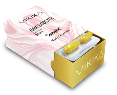 Hair Booster de la nueva línea Vikika Gold de Amix Nutrition es un suplemento en cápsulas destinado especialmente para mujeres activas y conscientes de la importancia de seguir unos hábitos saludables que contiene una mezcla exclusiva del grupo B (B1, B2, B3, B5, B6, B9 - ácido fólico, B12), Vitamina C, Vitamina E, Zinc y biotina.