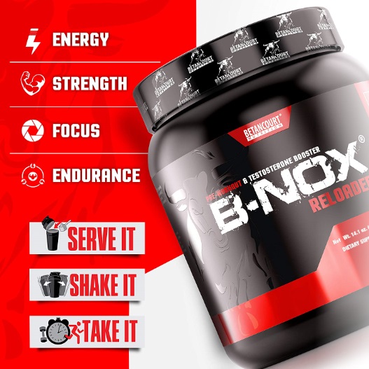 B-NOX Reloaded™ de Betancourt Nutrition es un poderoso pre-entreno potenciador del óxido nítrico y de la testosterona en polvo.