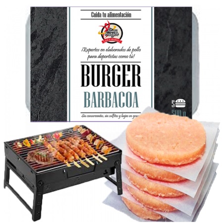 Fitness Burguer pollo barbacoa (5 unidades de 100 gramos). Fitness Burger Barbacoa consigue mantener todo el sabor clásico de una hamburguesa barbacoa, eliminando las grasas de su composición. Disfruta de una receta querida por todos, con la seguridad de que sus proteínas están aportando todos sus beneficios para tu actividad deportiva.