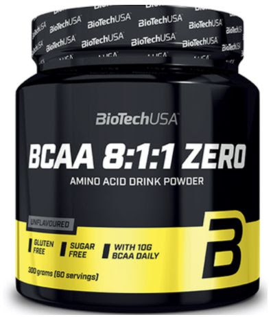 BCAA 8:1:1 Zero de BioTech USA es un suplemento en polvo que contiene el 100% de aminoácidos de cadena ramificada en polvo, sin sabor y con un ratio especial 8:1:1 (Leucina, Valina e Isoleucina) para una mayor activación del mecanismo anabólico mTOR.