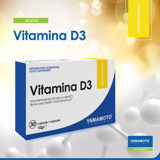 Vitamina D3 de Yamamoto® Nutrition es un suplemento en cápsulas que proporciona 50 mcg de vitamina D por cápsula equivalentes a 2000 UI de colecalciferol (forma D3 de la vitamina D).