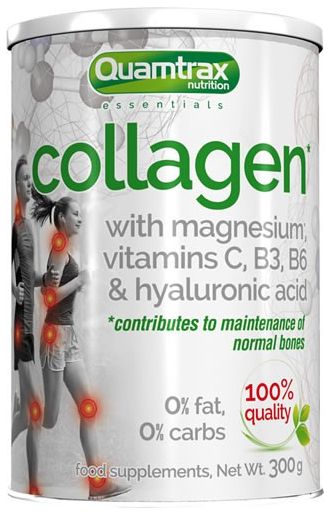 Collagen de Quamtrax Nutrition es un suplemento en polvo que contiene colágeno natural hidrolizado de la más alta calidad enriquecido con ácido hialurónico, magnesio y vitaminas (C, B3 y B6) para mantener nuestras articulaciones.