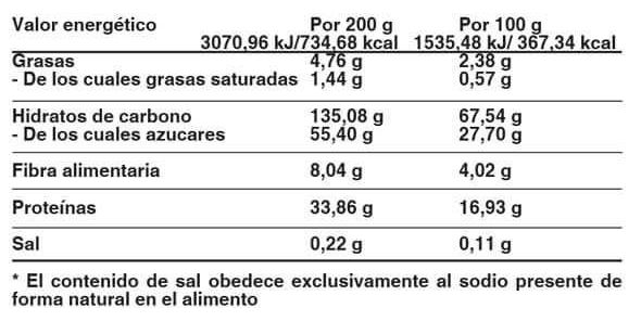 - Proporciona 70 gramos de carbohidratos y 17 gramos de proteína por cada 100 gramos.