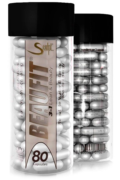 BeauFit de Sculpt - Open Innovation es un suplemento en cápsulas que contiene una fórmula quemadora de grasas tres en uno, capaz de aumentar tu energía, regular el agua corporal y rejuvenecerte al mismo tiempo gracias a su gran poder antioxidante.